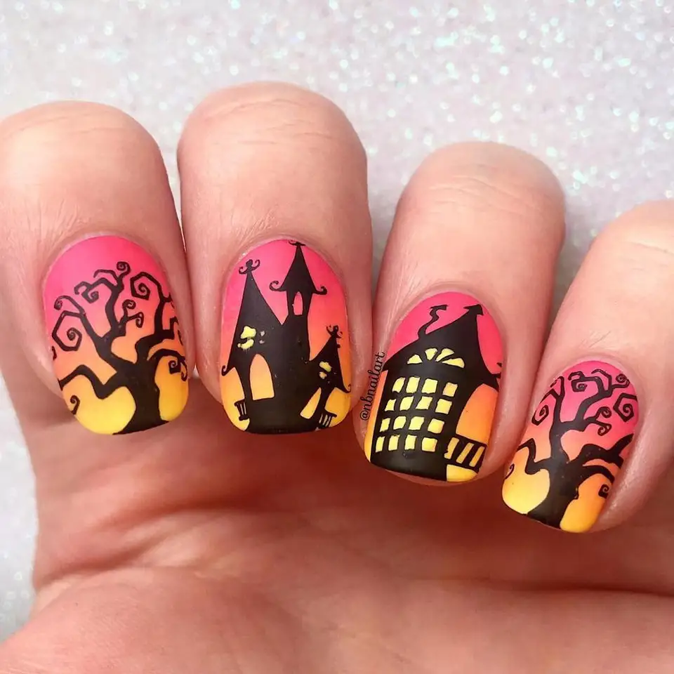 45 amazing ideas for halloween nails that are anything but cheesy. These cute ideas for halloween nails will bring your look to the next level. For the ultimate in halloween nail art, create 10 digits of funky, spooky nails that will compliment any costume and make you the hit of the halloween party or while trick or treating. Love nails how to do nails pretty nails fun nails glitter nails halloween nail designs halloween nail art spooky halloween halloween ideas.